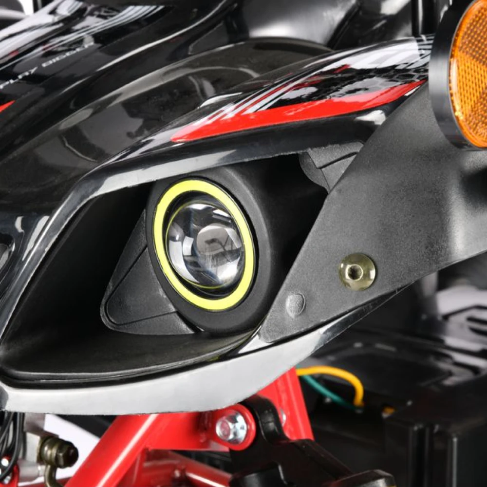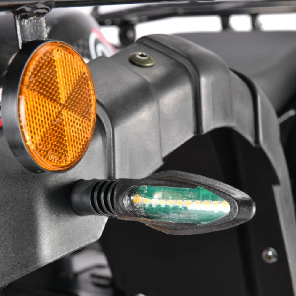 Модель мощностью 3000 Вт и способна выдерживать вес до 200 кг, предназначена для всесезонной эксплуатации. Наличие фар, яркие ходовые огни, не менее яркие поворотники делают технику заметной, допускают езду в ночное время и в непогоду.