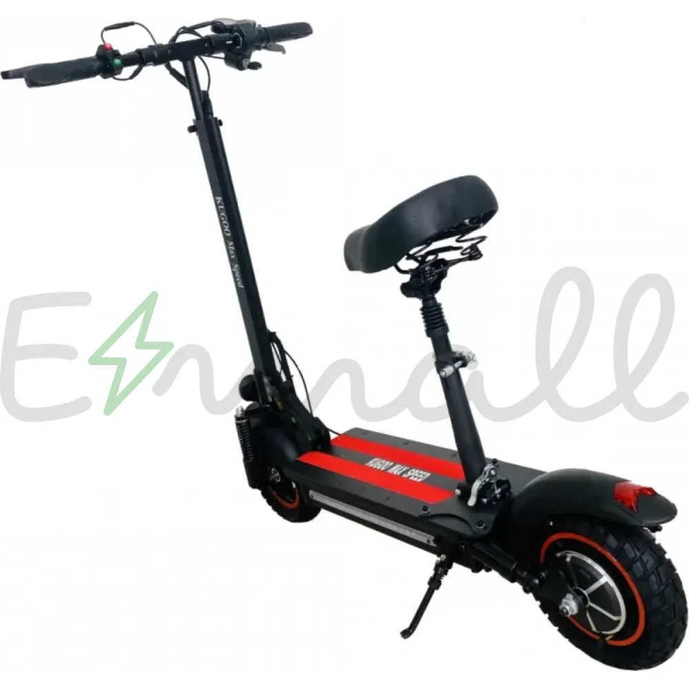 Самокат Kugoo Max Speed воплотил в себе все удачные детали от предыдущих моделей. Конструкция очень удобная, оборудована съемным сидением, руль и сидение можно подогнать по высоте, дека увеличилась в размерах, стала шире. На этой модели установлено заднее крыло нового типа, закрывает большую часть колеса, крепится непосредственно к деке.
