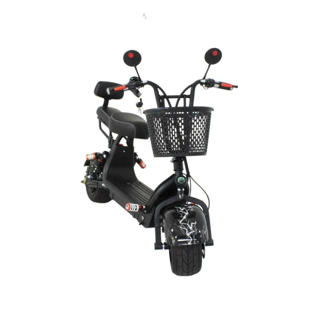 Большим плюсом Citycoco GT Mini является грузоподъемность до 150кг.,которая достигается за счет строения металлического корпуса, поэтому в модели предусмотрено двойное сидение и удобные подставки, вы смело можете взять по прогулку с собой ещё одного человека.