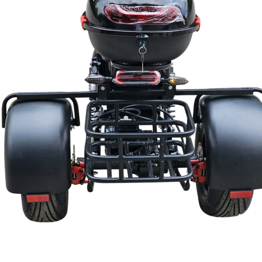 Электроскутер трехколесный CITYCOCO GT X11 TRIKE 2023 в черном цвете - это инновационное транспортное средство, которое обеспечит вам комфортное и стильное передвижение по городским улицам.