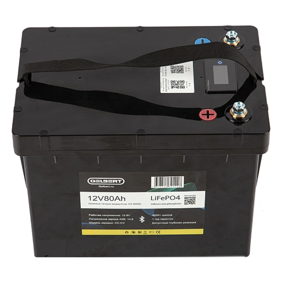 Литиевый тяговый аккумулятор Gelbert LiFePO4 (12V/80Ah/80А/600Wh) BT/Display